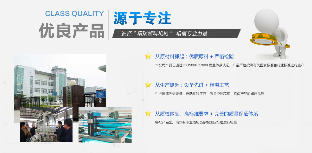 山東精瑞塑料機(jī)械有限公司是集研發(fā)、設(shè)計(jì)和生產(chǎn)管、膜、絲、帶、板、中空和電線(xiàn)電纜等塑料機(jī)械及塑料模具于一體的專(zhuān)業(yè)公司。公司匯集了一批專(zhuān)業(yè)的設(shè)計(jì)人員和研發(fā)人才,熟練的操作工人和經(jīng)驗(yàn)豐富的安裝調(diào)試人員以及專(zhuān)業(yè)化的售后服務(wù)隊(duì)伍,保證了產(chǎn)品的高品質(zhì)、高性能,實(shí)現(xiàn)了快捷高效的售后服務(wù)。公司不斷研發(fā)新產(chǎn)品,產(chǎn)品暢銷(xiāo)全國(guó)二十幾個(gè)省、市、自治區(qū),并出口俄羅斯、敘利亞、新加坡、非洲和東南亞等地區(qū),公司擁有自營(yíng)進(jìn)出口權(quán)。